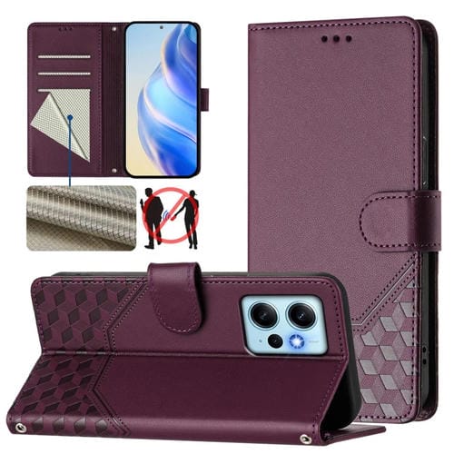 Funda de Cuero Rfid con Relieve de Panal Global para Redmi Note 12 4G (Violeta)