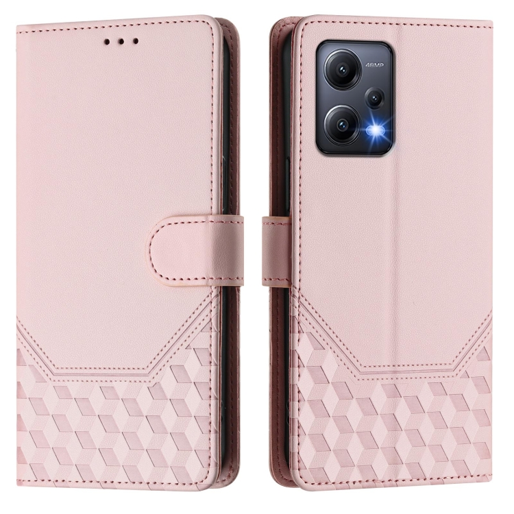 Funda de Cuero Rfid con Relieve de Panal Global para Redmi Note 12 5G (Rosa)