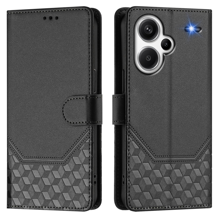Funda de Cuero Rfid con Relieve de Panal Global para Redmi Note 13 Pro+ 5G (Negra)