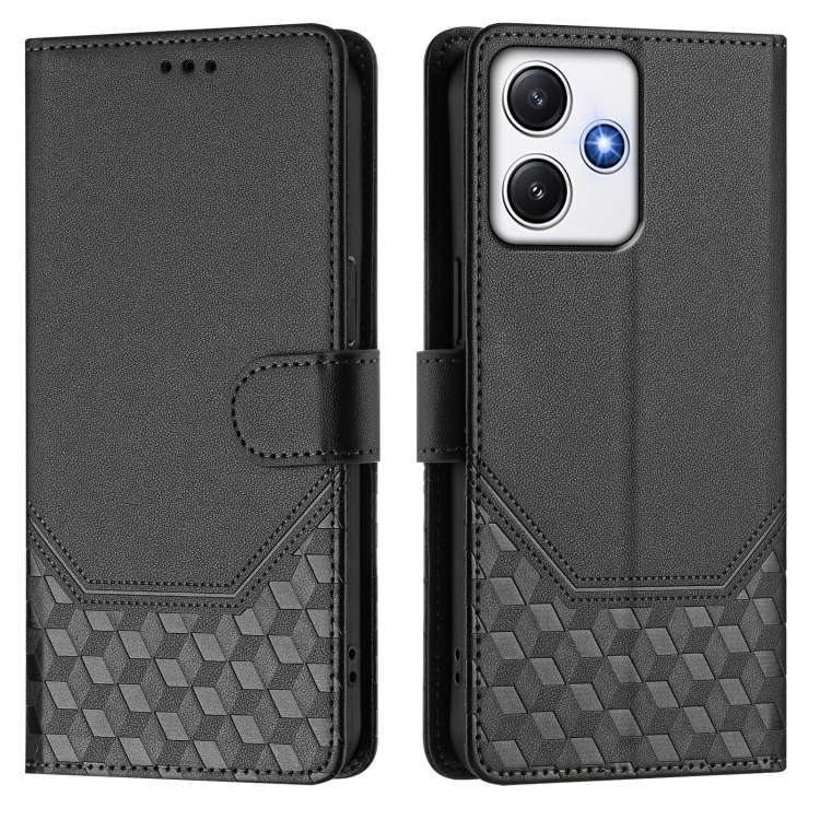 Funda de Cuero Rfid con Relieve de Panal para Redmi 12 5G / 4G Global / Note 12R (Negra)