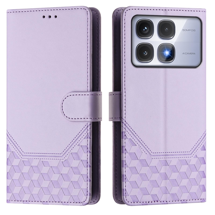 Funda de Cuero Rfid con Relieve de Panal para Redmi K70 Ultra 5G (Morado Claro)
