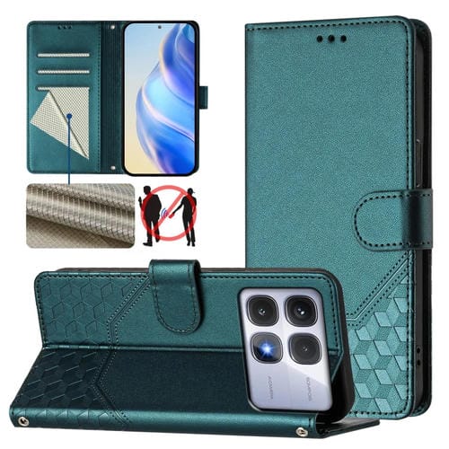 Funda de Cuero Rfid con Relieve de Panal para Redmi K70 Ultra 5G (Verde Pavo Real)