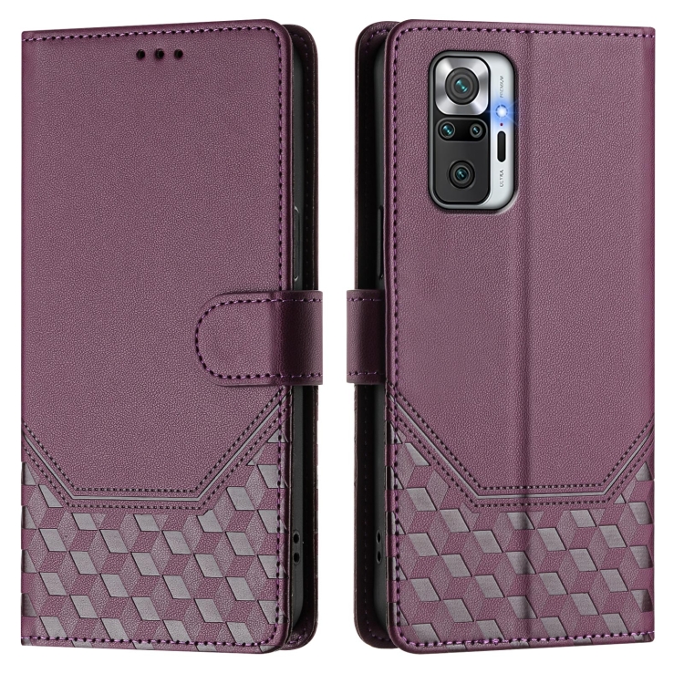 Funda de Cuero Rfid con Relieve de Panal para Redmi Note 10 Pro 4G/Note 10 Pro Max (Violeta)