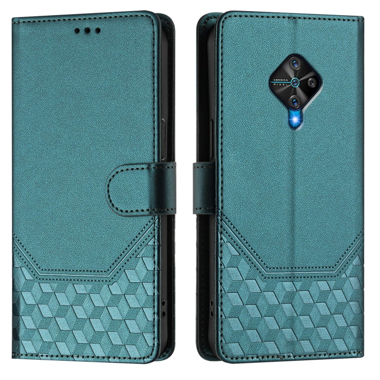 Funda de Cuero Rfid con Relieve de Panal para Vivo Y31 4G 2021 India/Y53S 4G (Verde Pavo Real)