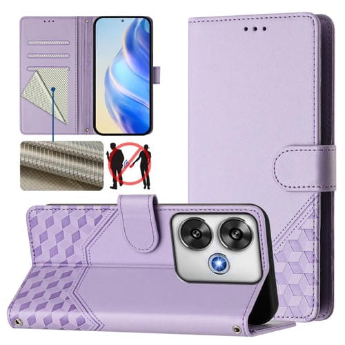 Funda de Cuero Rfid con Relieve de Panal para Xiaomi Poco F6 5G (Morado Claro)