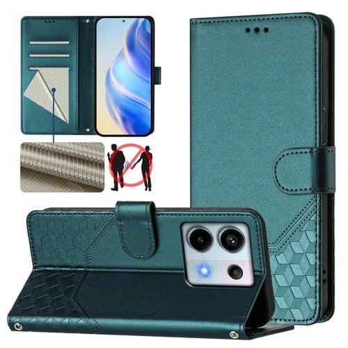 Funda de Cuero Rfid con Relieve de Panal para Xiaomi Poco X6 5G (Verde Pavo Real)