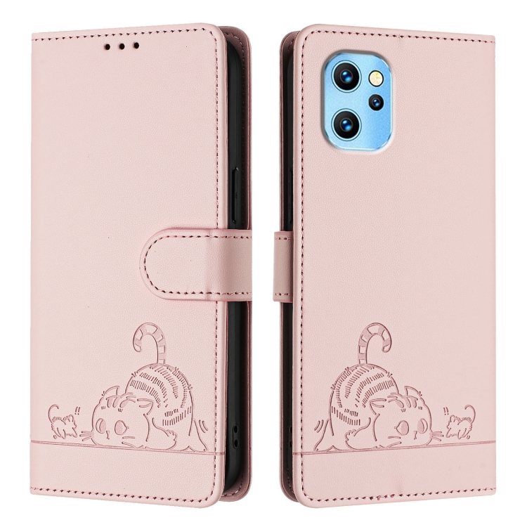 Funda de Cuero Rfid con Relieve Rata y Gato para Umidigi Power 7 Max con Cordón (Rosa)