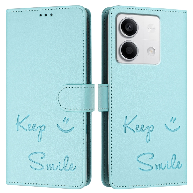 Funda de Cuero Rfid con Relieve de Sonrisa Global para Redmi Note 13 5G (Verde Menta)