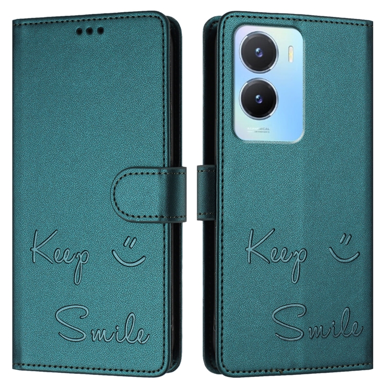 Funda de Cuero Rfid con Relieve de Sonrisa Global para Vivo Y02S 4G (Verde Pavo Real)