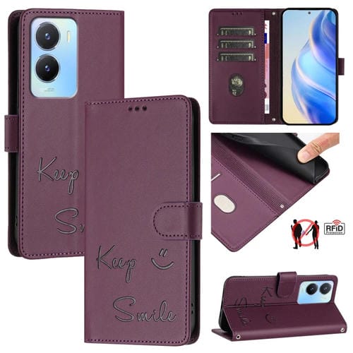 Funda de Cuero Rfid con Relieve de Sonrisa Global para Vivo Y16 4G (Violeta)