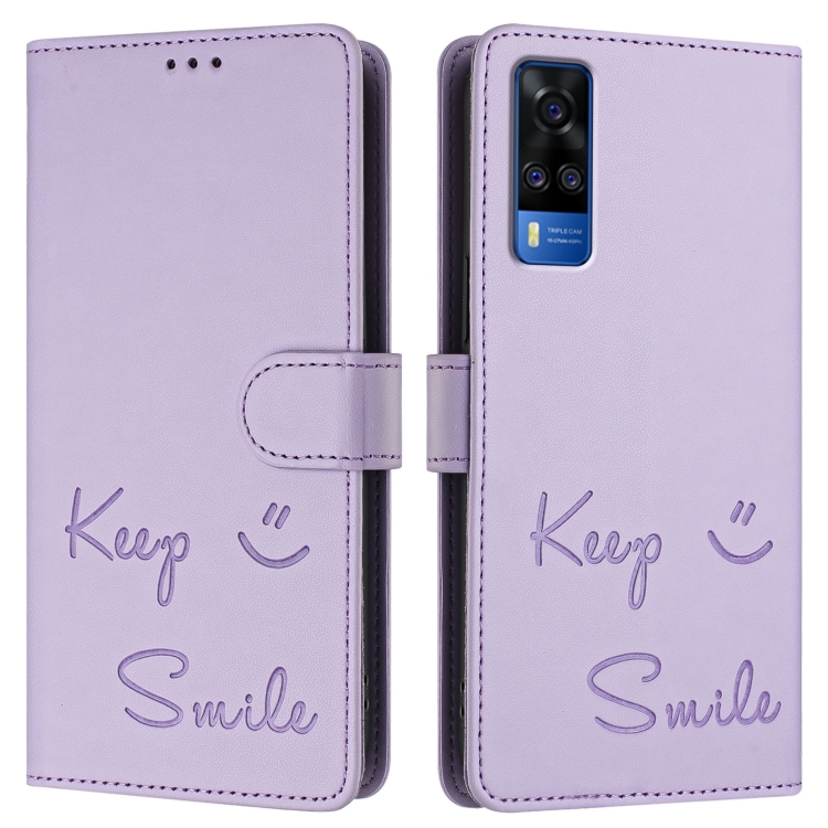 Funda de Cuero Rfid con Relieve de Sonrisa India para Vivo Y31 4G 2021 (Morado Claro)