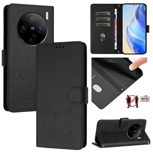 Funda de Cuero Rfid con Relieve de Sonrisa para Vivo X100 (Negra)