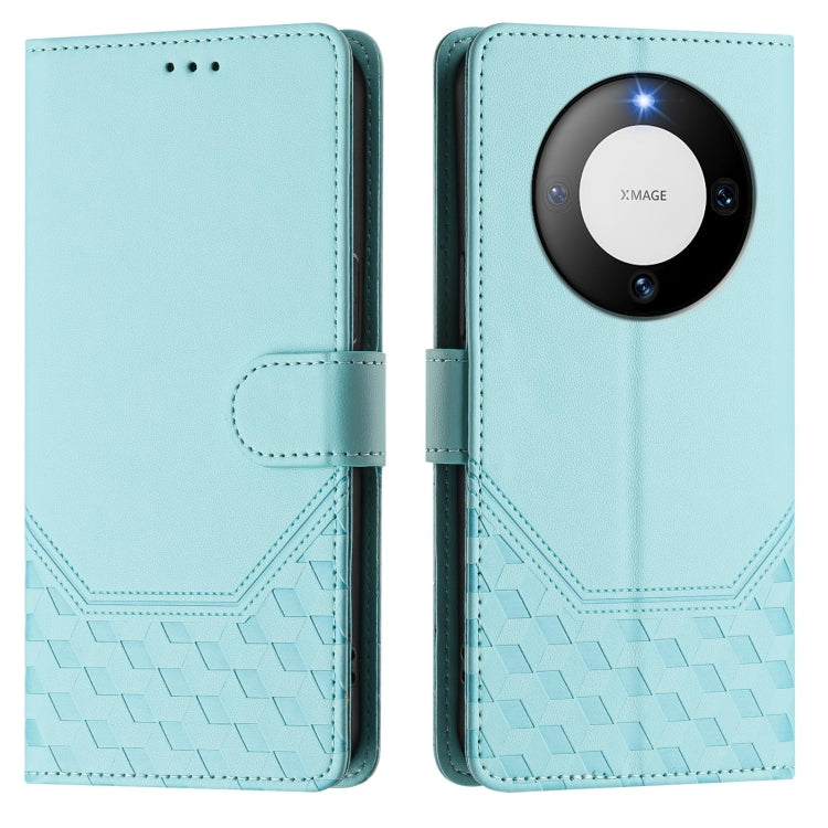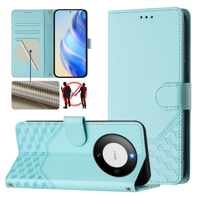 Funda de Cuero Rfid con Relieve en Panal para Huawei Mate 60 Pro y Mate 60 Pro+ (Verde Menta)