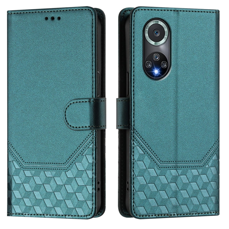 Funda de Cuero Rfid con Relieve en Panal para Huawei Nova 9 Pro y Honor 50 Pro (Verde Pavo Real)