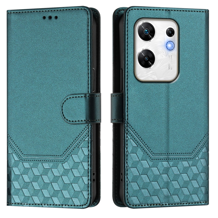 Funda de Cuero Rfid con Relieve en Panal para Infinix Zero 30 4G (Verde Pavo Real)