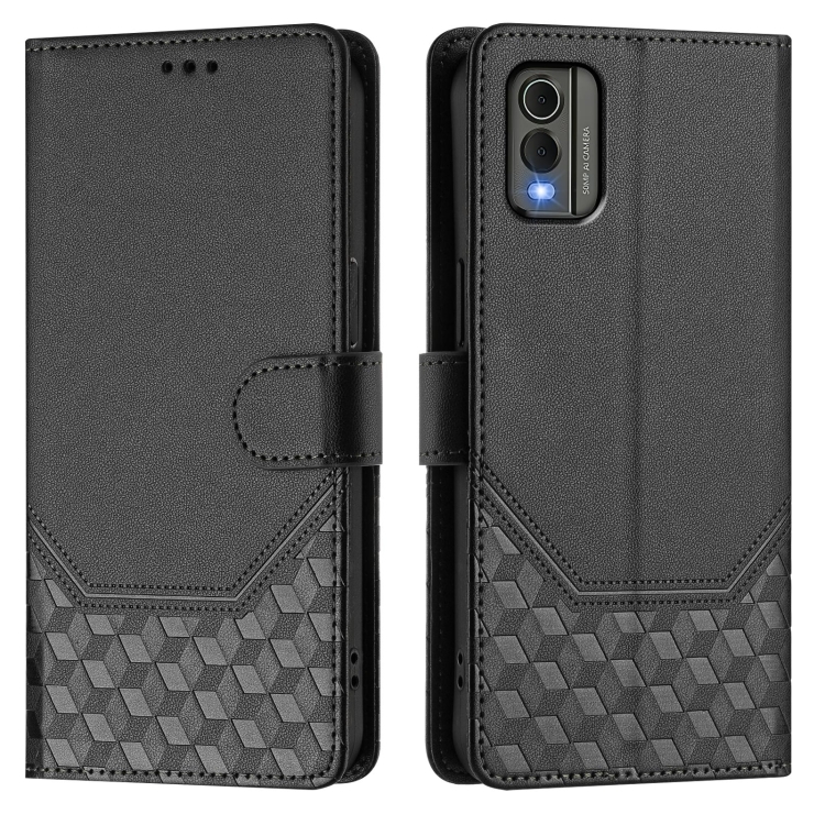 Funda de Cuero Rfid con Relieve en Panal para Nokia C32 (Negra)
