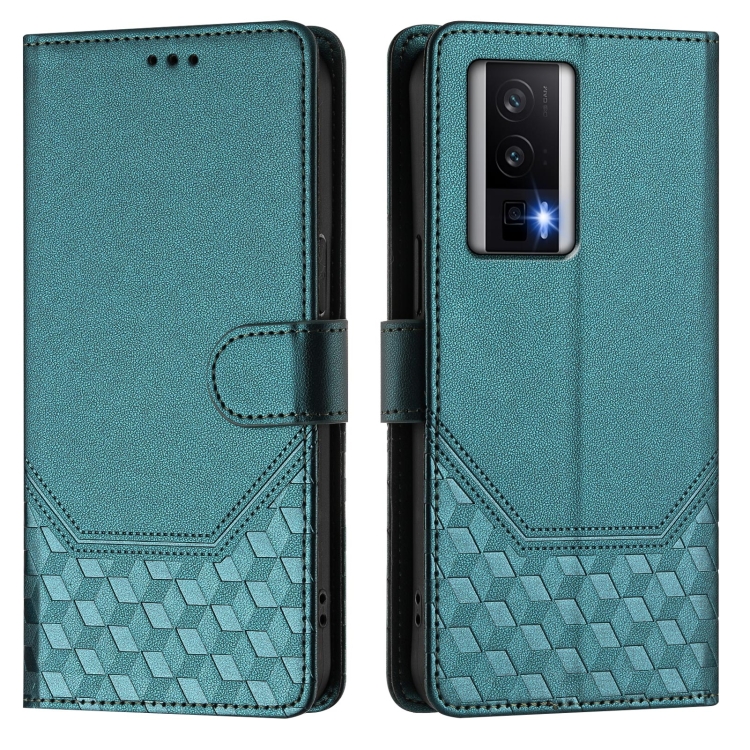 Funda de Cuero Rfid con Relieve En Panal para Redmi K60/K60 Pro (Verde Pavo Real)