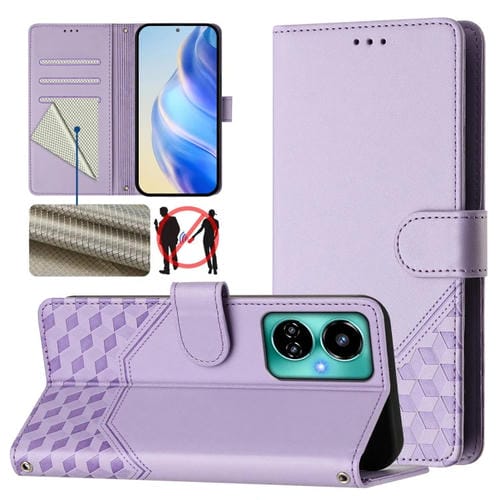 Funda de Cuero Rfid con Relieve en Panal para Tecno Camon 19 y Camon 19 Pro 5G (Morado Claro)