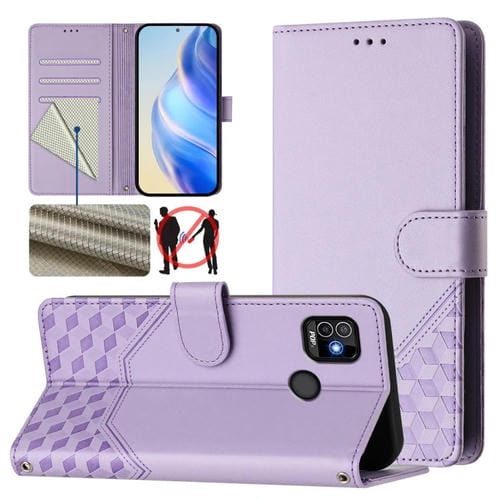 Funda de Cuero Rfid con Relieve en Panal para Tecno Pop 5 (Morado Claro)