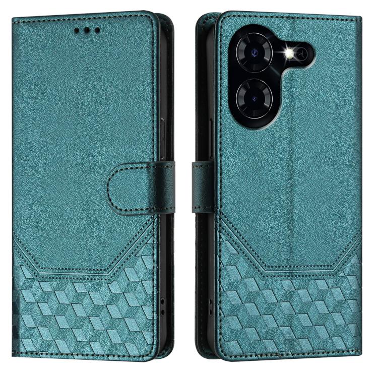 Funda de Cuero Rfid con Relieve en Panal para Tecno Pova 5 (Verde Pavo Real)