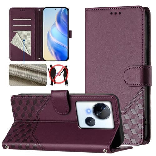 Funda de Cuero Rfid con Relieve en Panal para Tecno Spark 10 5G (Violeta)