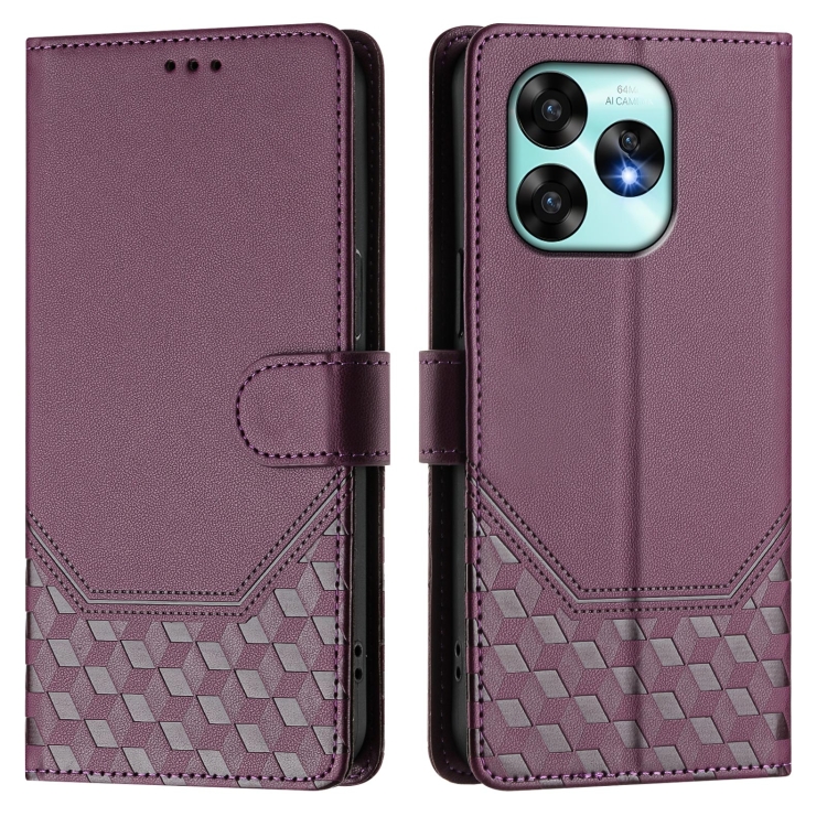 Funda de Cuero Rfid con Relieve En Panal para Umidigi A15/A15C/A15T (Violeta)