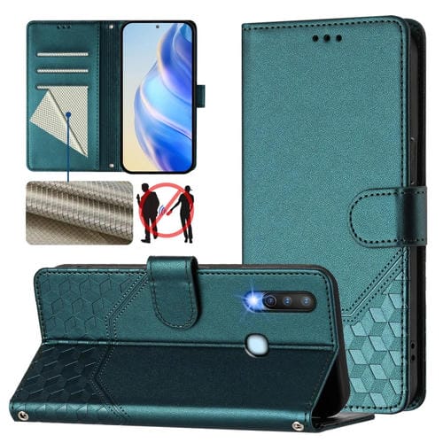 Funda de Cuero Rfid con Relieve En Panal para Vivo Y17/Y15/Y12/Y11 (Verde Pavo Real)