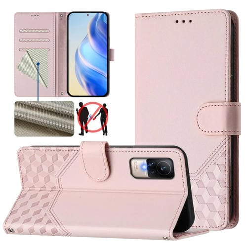 Funda de Cuero Rfid con Relieve En Panal para Xiaomi Civi 1S (Rosa)