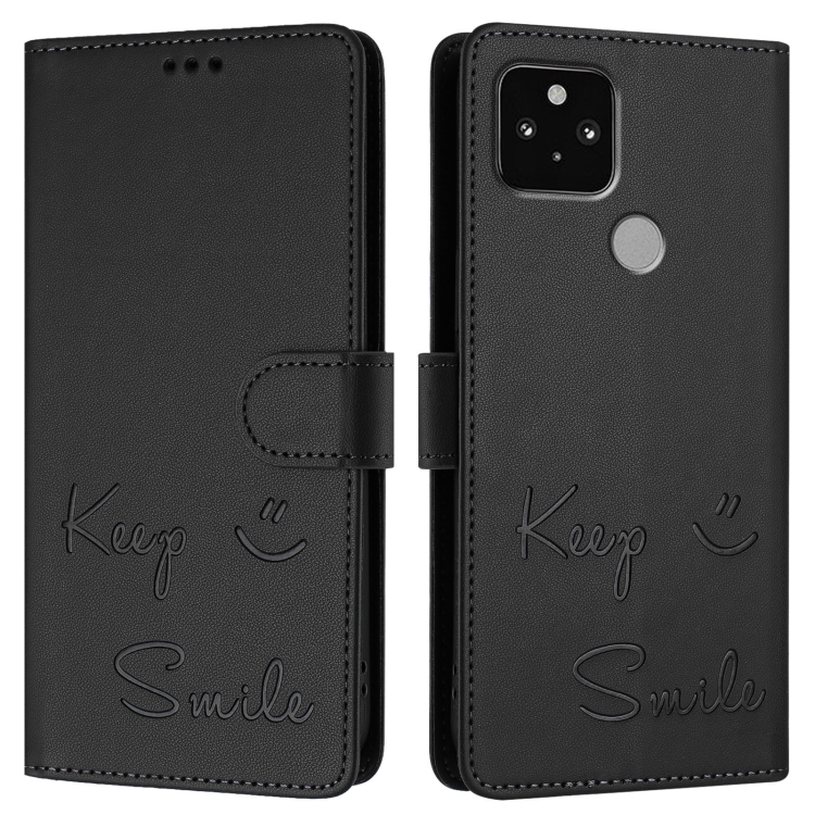 Funda de Cuero Rfid con Relieve Sonriente para Google Pixel 5 (Negra)