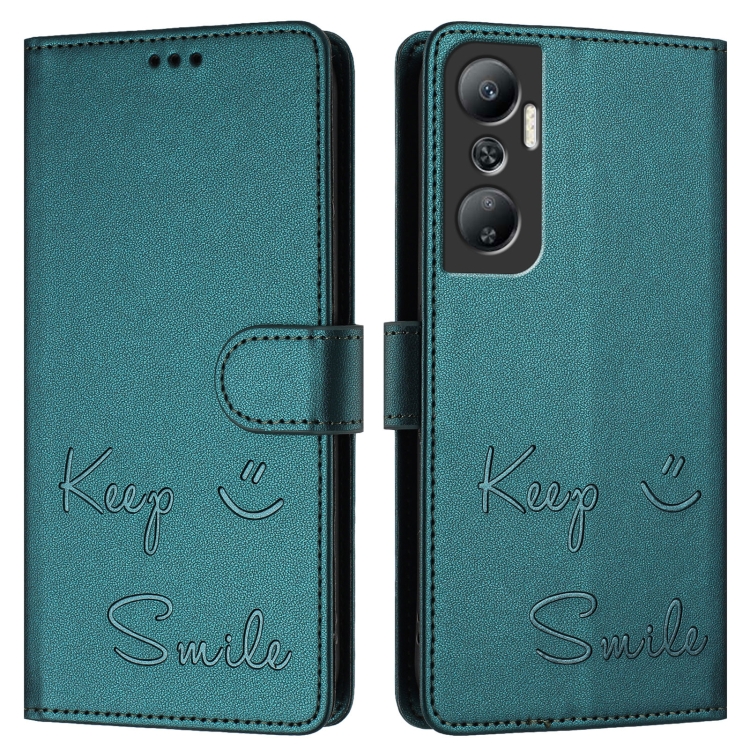 Funda de Cuero RFID con Relieve Sonriente para Infinix Hot 20 4G X6826 (Verde Pavo Real)