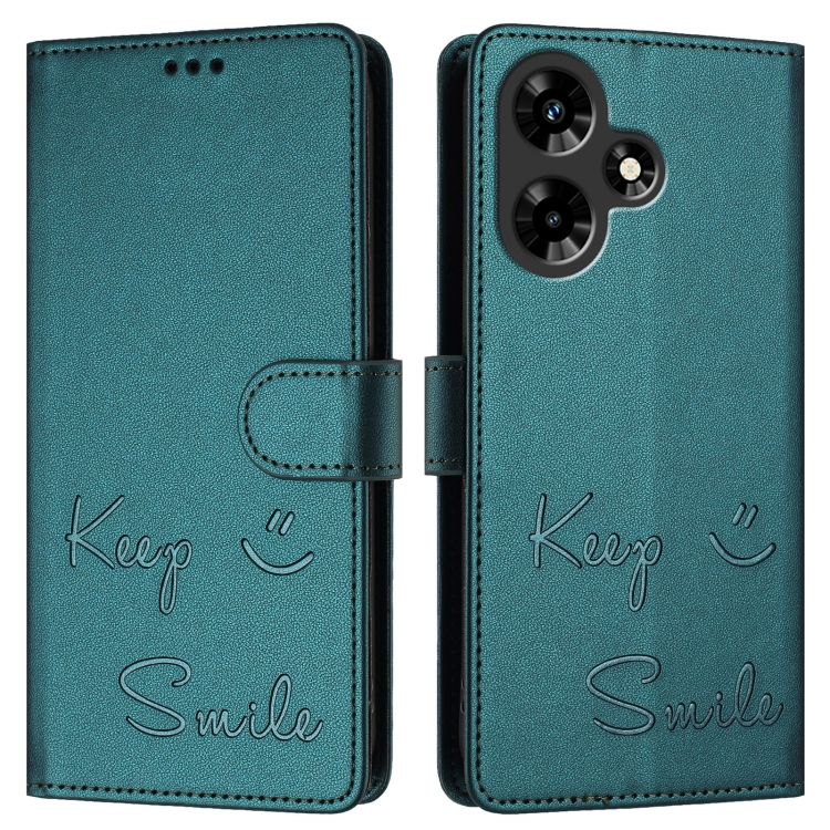 Funda de Cuero RFID para Infinix Hot 30 4G con Relieve Sonriente (Verde Pavo Real)