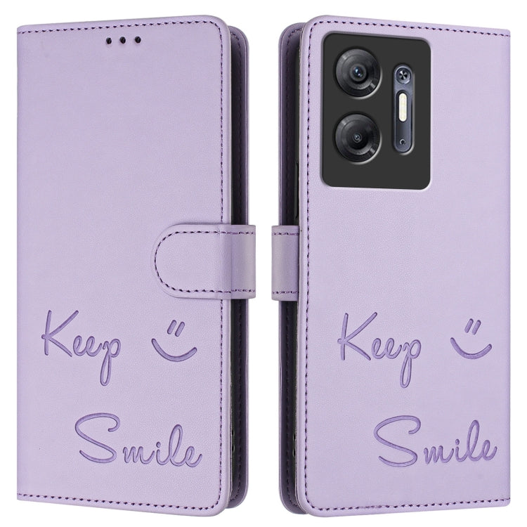 Funda de Cuero Rfid con Relieve Sonriente para Infinix Hot 30 5G (Morado Claro)