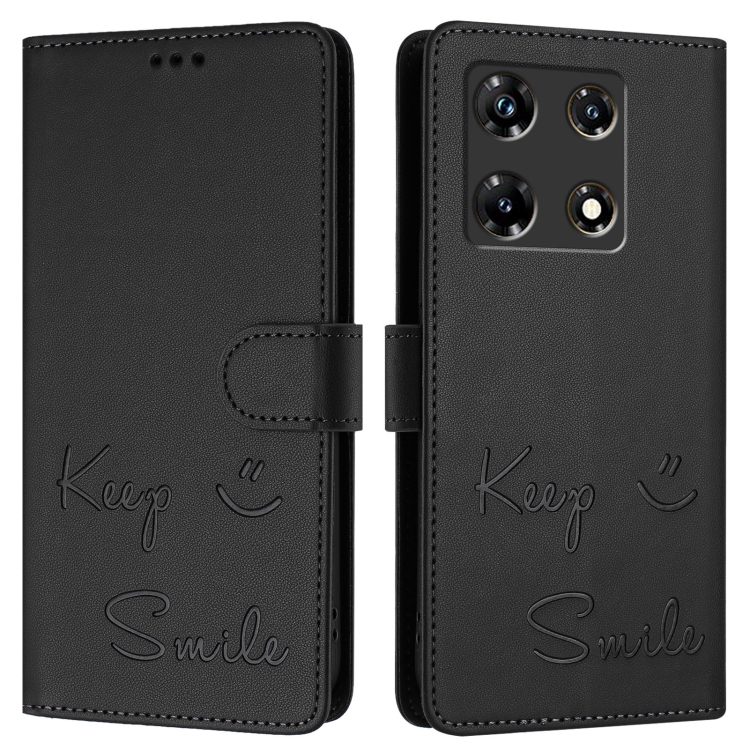 Funda de Cuero Rfid con Relieve Sonriente para Infinix Note 30 Pro y Note 30 5G (Negra)