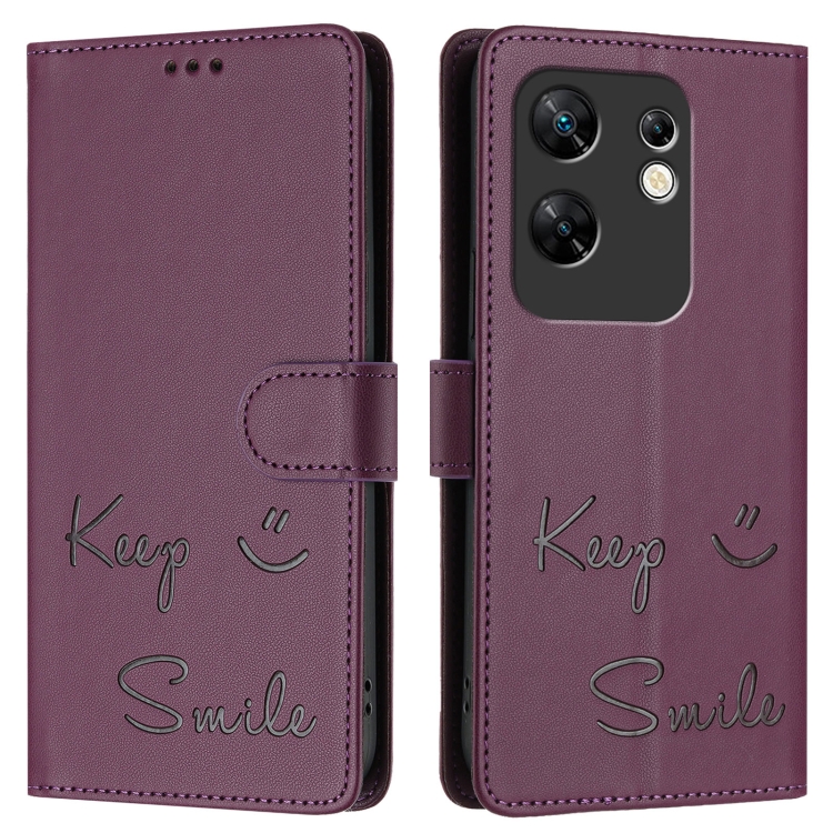 Funda de Cuero Rfid con Relieve Sonriente para Infinix Zero 30 4G (Violeta)