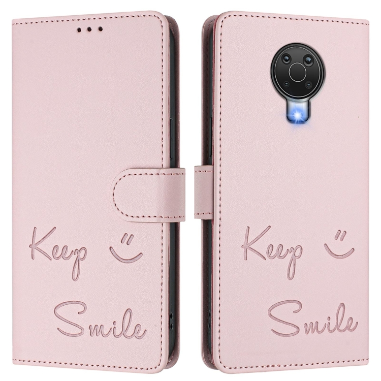 Funda de Cuero Rfid con Relieve Sonriente para Nokia 6.3/G20/G10 (Rosa)