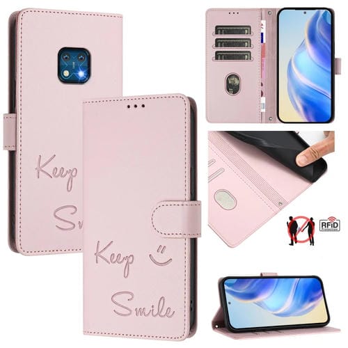 Funda de Cuero Rfid con Relieve Sonriente para Nokia Xr20 (Rosa)