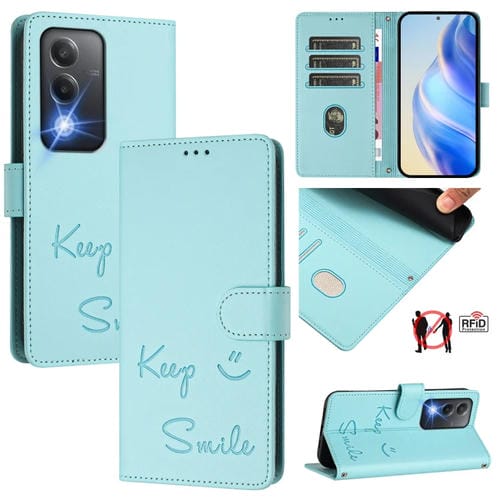 Funda de Cuero Rfid con Relieve Sonriente para Oppo A80 5G Eu (Verde Menta)