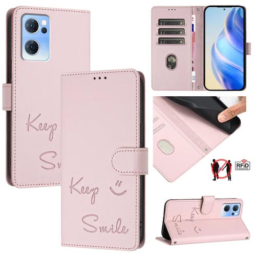 Funda de Cuero Rfid con Relieve Sonriente para Oppo Find X5 Lite (Rosa)