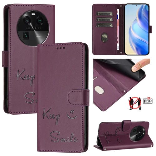 Funda de Cuero Rfid con Relieve Sonriente para Oppo Find X6 (Violeta)