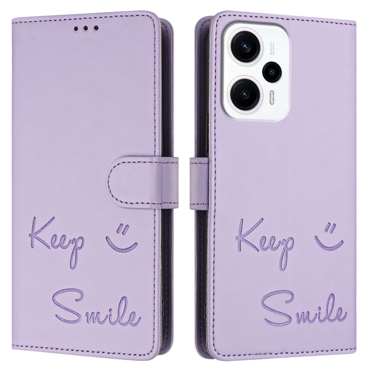Funda de Cuero Rfid con Relieve Sonriente para Redmi Note 11T Pro+/12T Pro (Morado Claro)
