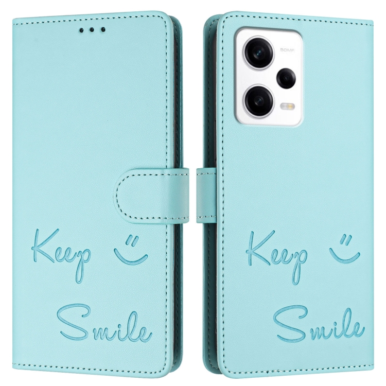 Funda de Cuero Rfid con Relieve Sonriente para Redmi Note 12 Pro+ 5G Global/India (Verde Menta)