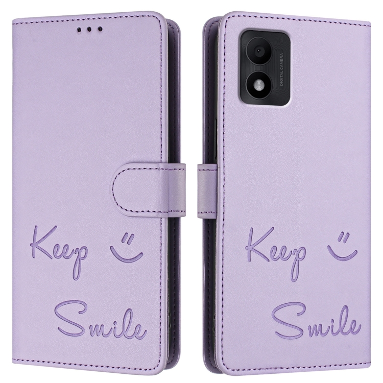 Funda de Cuero Rfid con Relieve Sonriente para TCL 303 (Morado Claro)