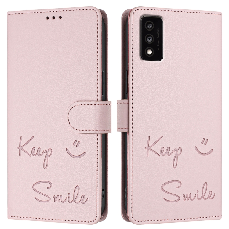 Funda Cuero Rfid con Relieve Sonriente para TCL 30T T603Dl (Rosa)