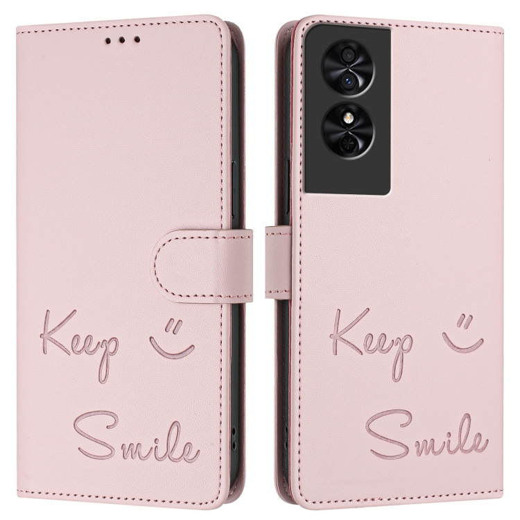 Funda de Cuero Rfid con Relieve Sonriente para TCL 50 Se (Rosa)