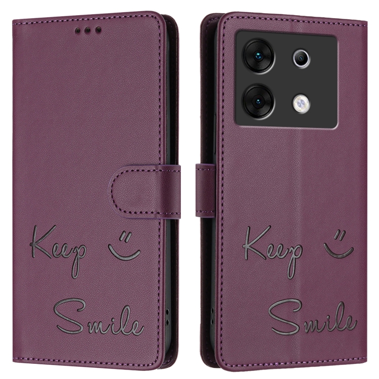 Funda de Cuero Rfid con Relieve Sonriente para Teléfono Infinix Zero 30 5G (Violeta)