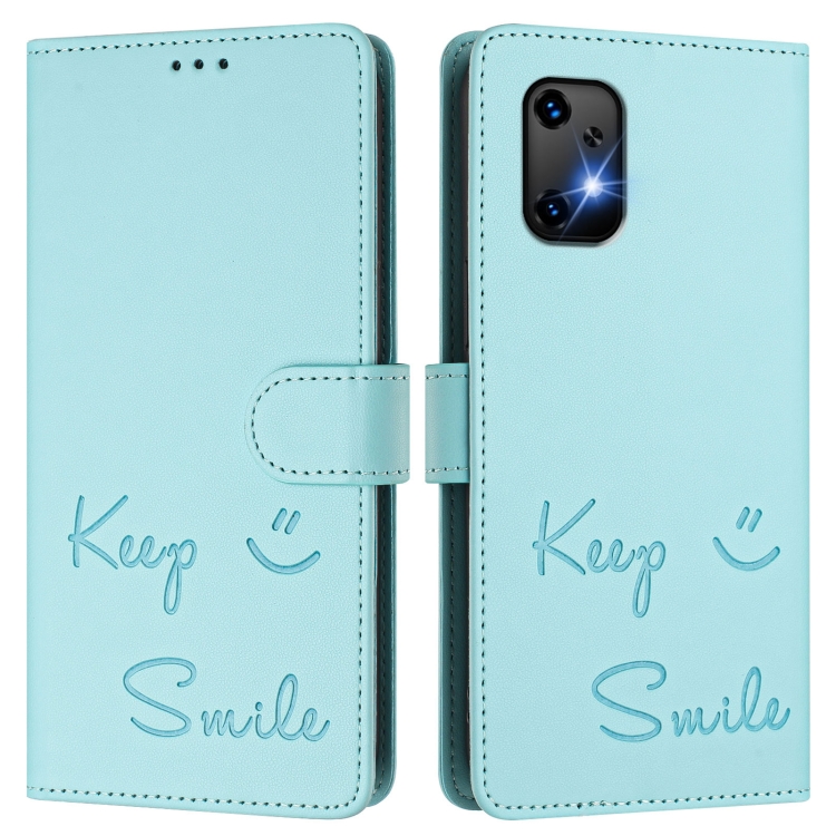 Funda de Cuero Rfid para Teléfono Umidigi Bison X20 con Relieve Sonriente (Verde Menta)