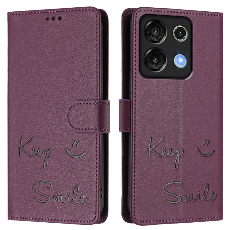 Funda de Cuero Rfid con Relieve Sonriente para Teléfono Umidigi G9 5G (Violeta)