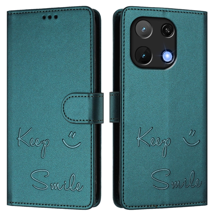 Funda de Cuero Rfid con Relieve Sonriente para Umidigi Note 90 (Verde Pavo Real)