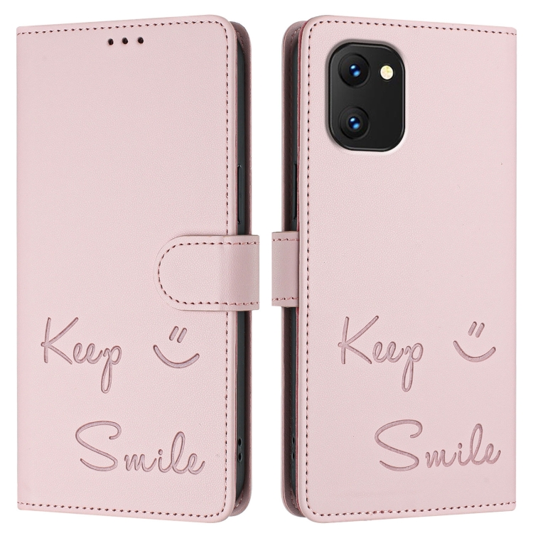 Funda de Cuero Rfid para Umidigi Power 7/7S con Relieve Sonriente (Rosa)