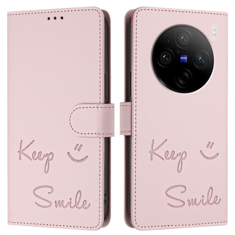 Funda de Cuero Rfid con Relieve Sonriente para Vivo X100 (Rosa)
